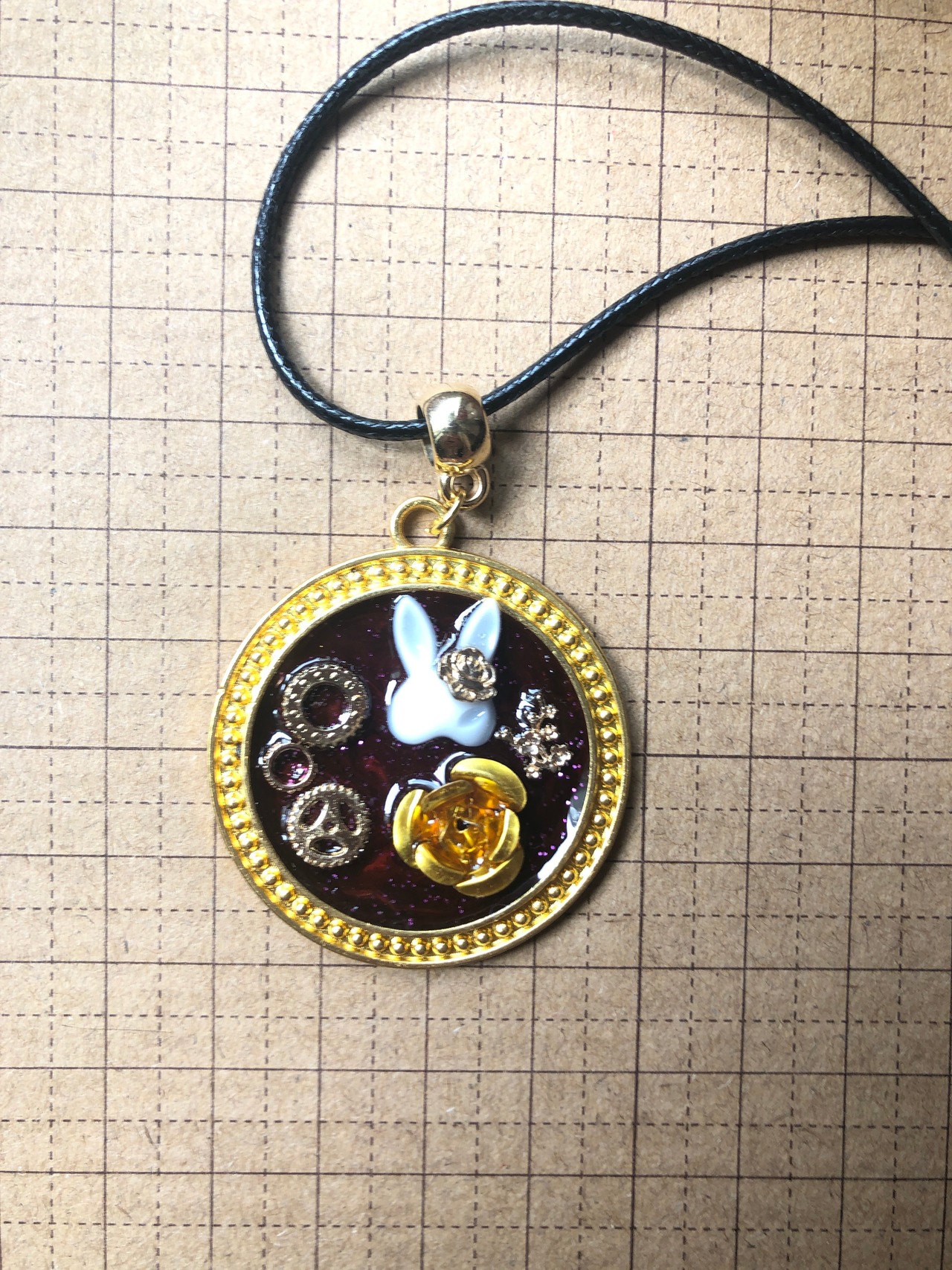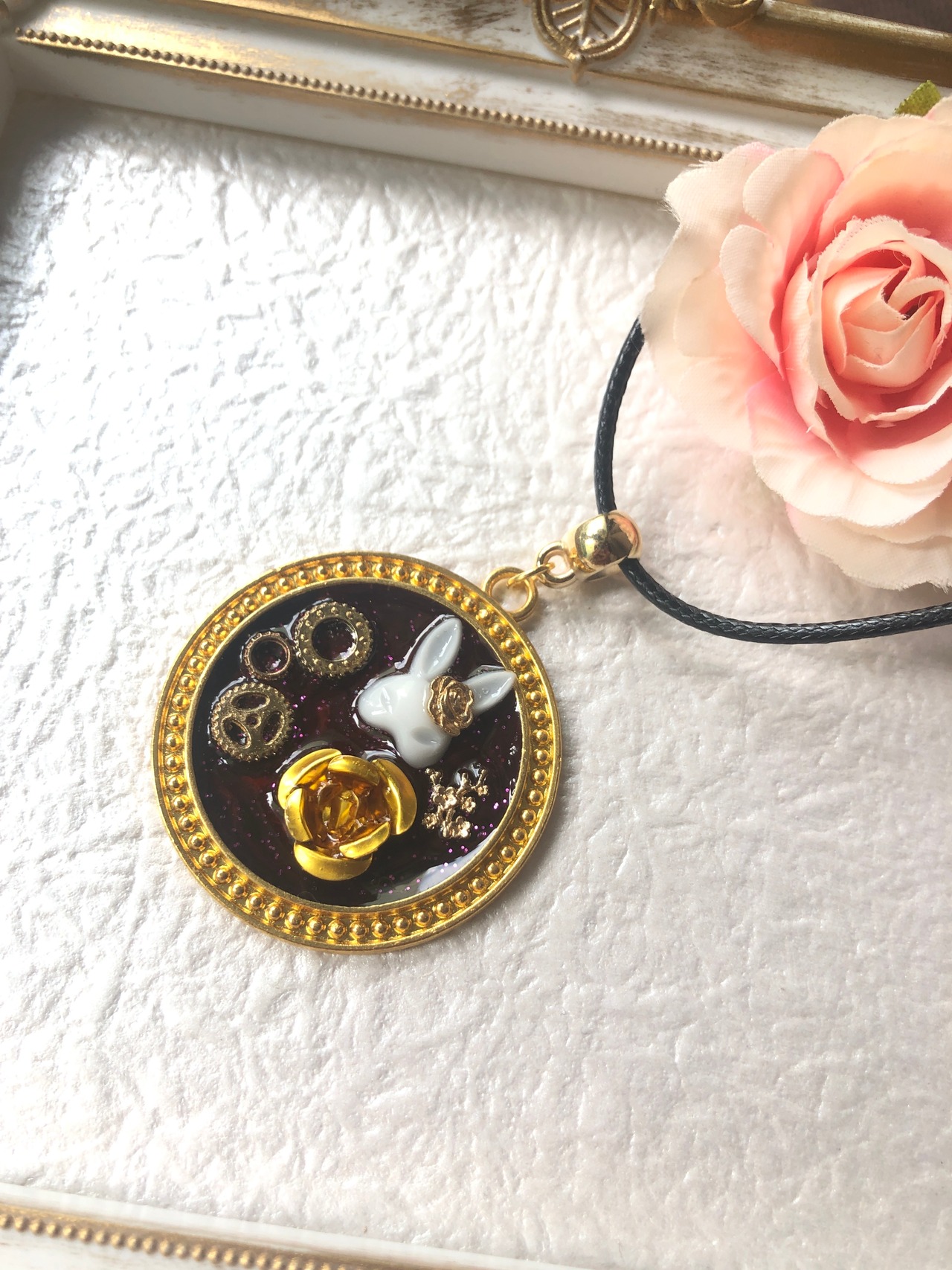 仮面ラビット 歯車 薔薇 ペンダント 赤×金