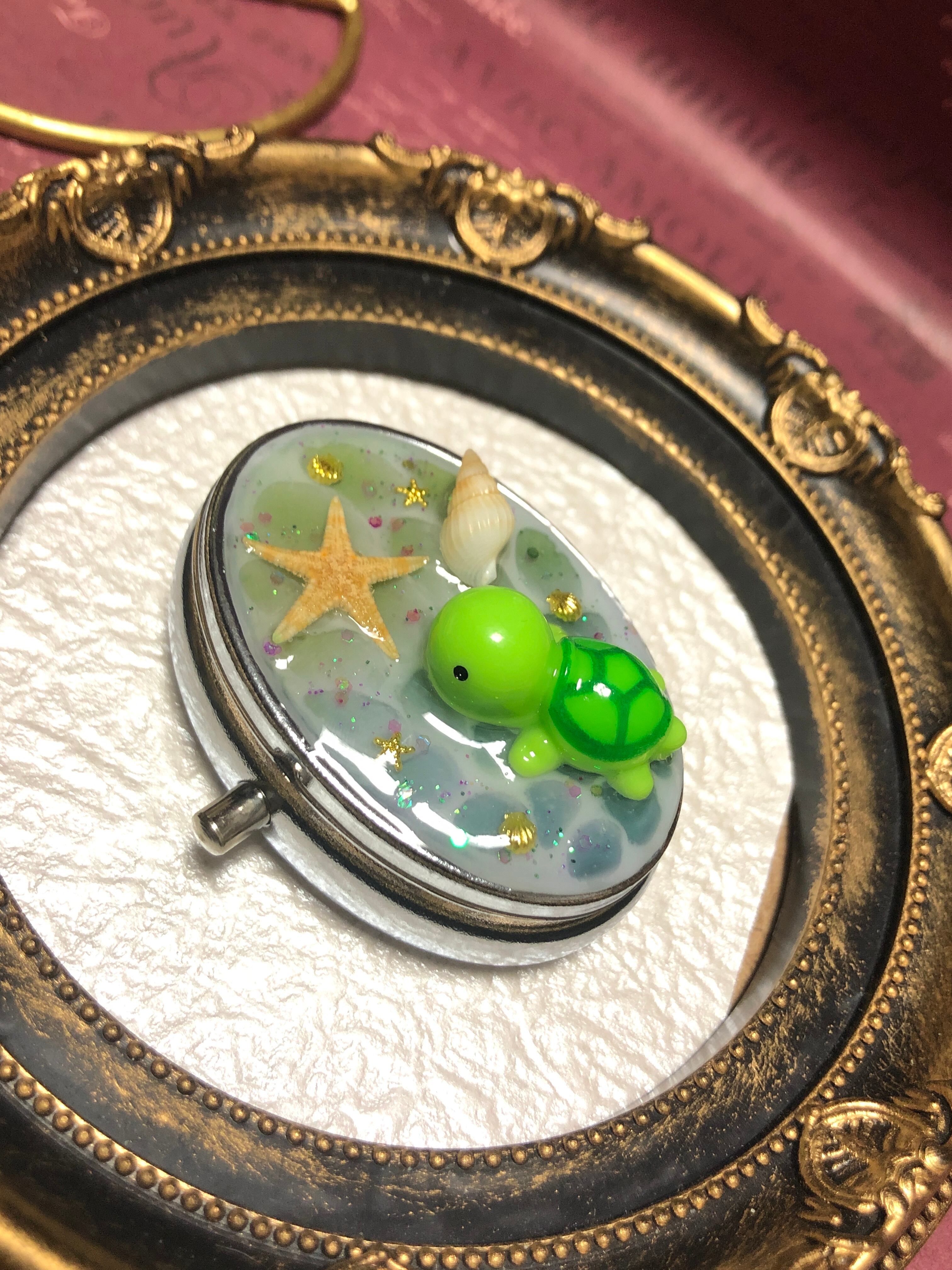 カメ 水面 青×緑 ピルケース キラキラ ミラー付き