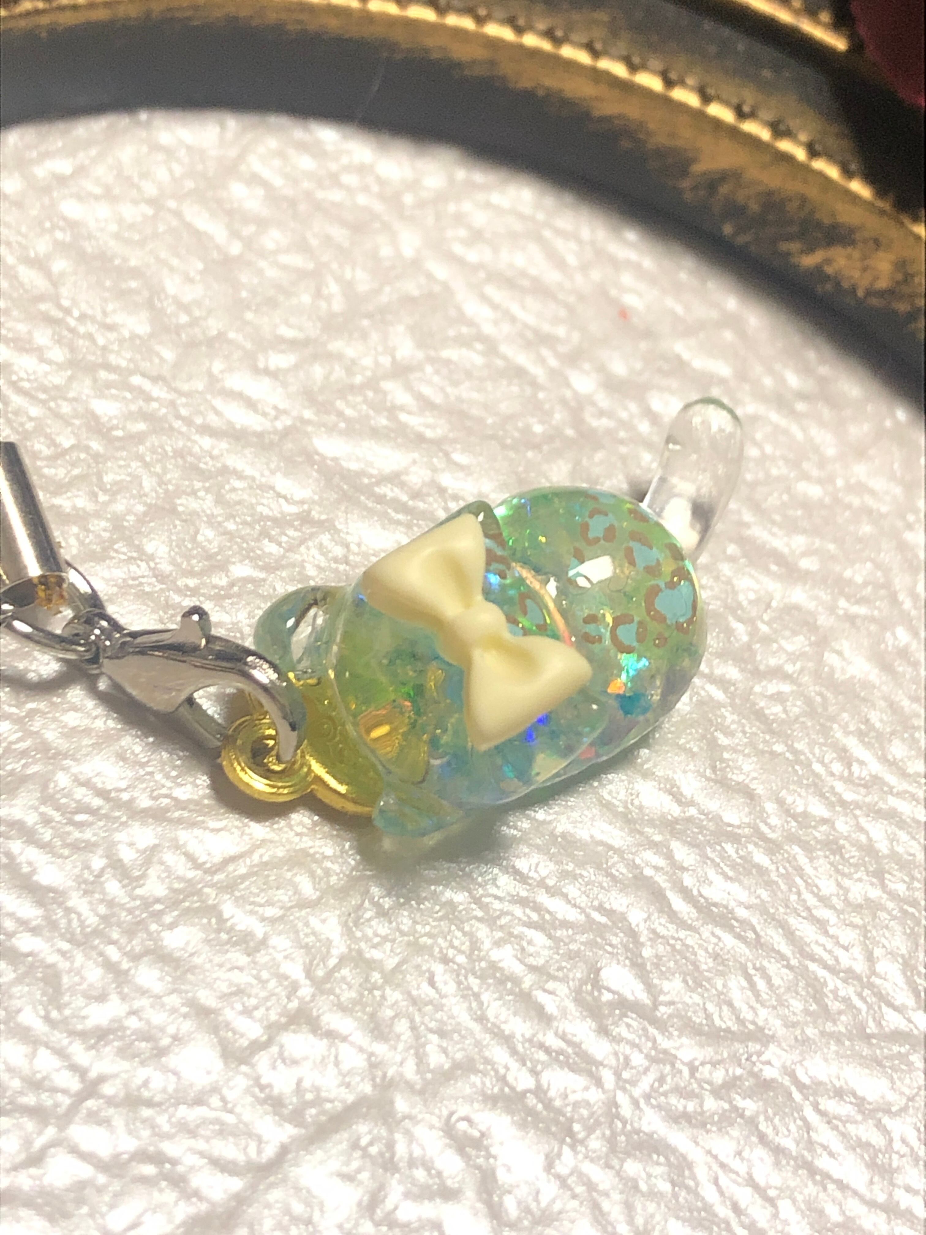 じゃれ猫 ヒョウ柄 リボン ストラップ