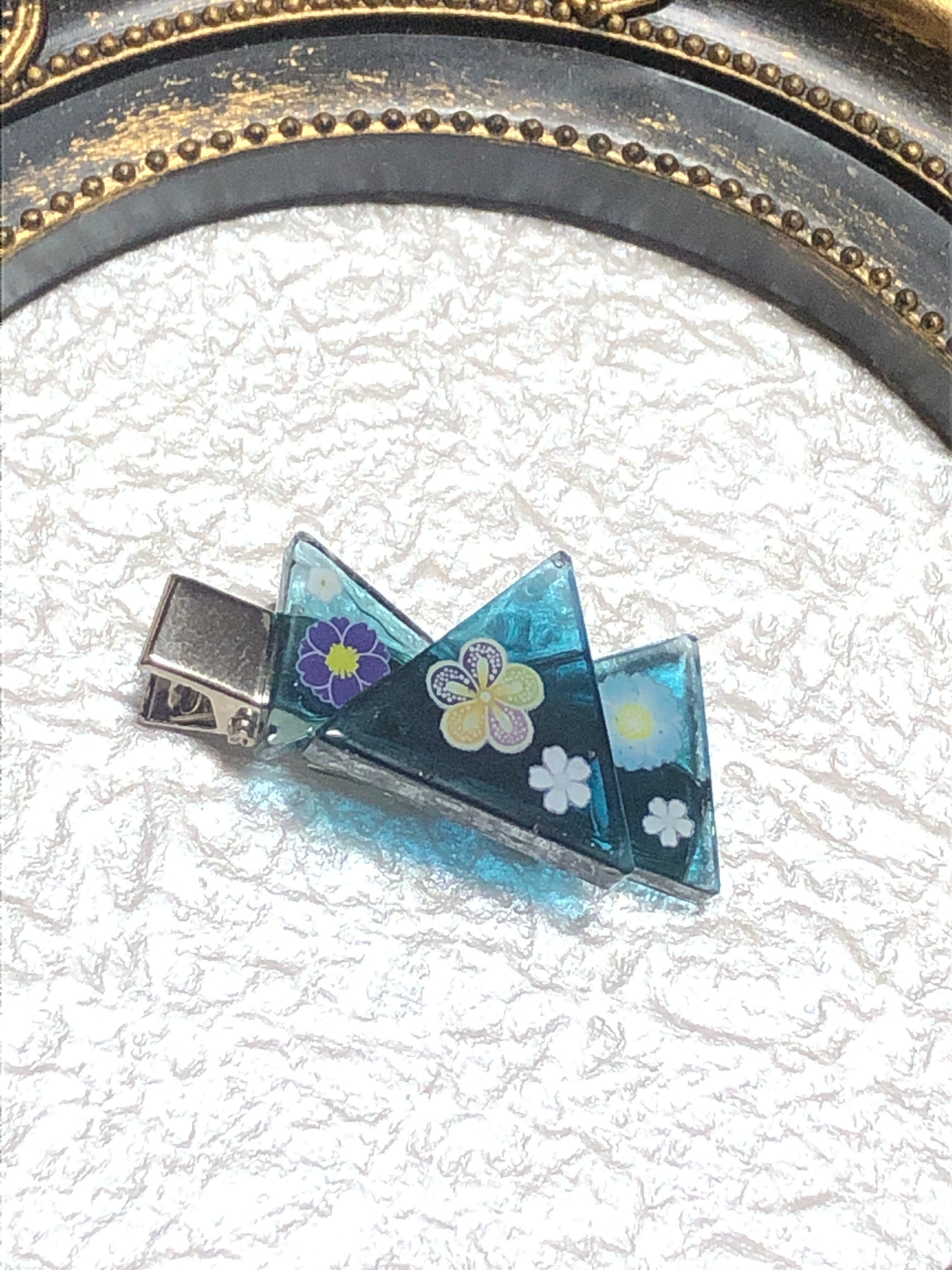 三角和風ヘアクリップ ブルー
