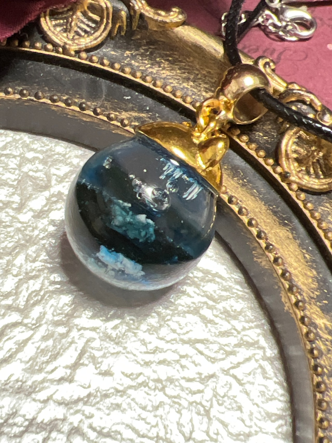 【訳あり品】幻想的空玉 青 クマ耳ペンダント