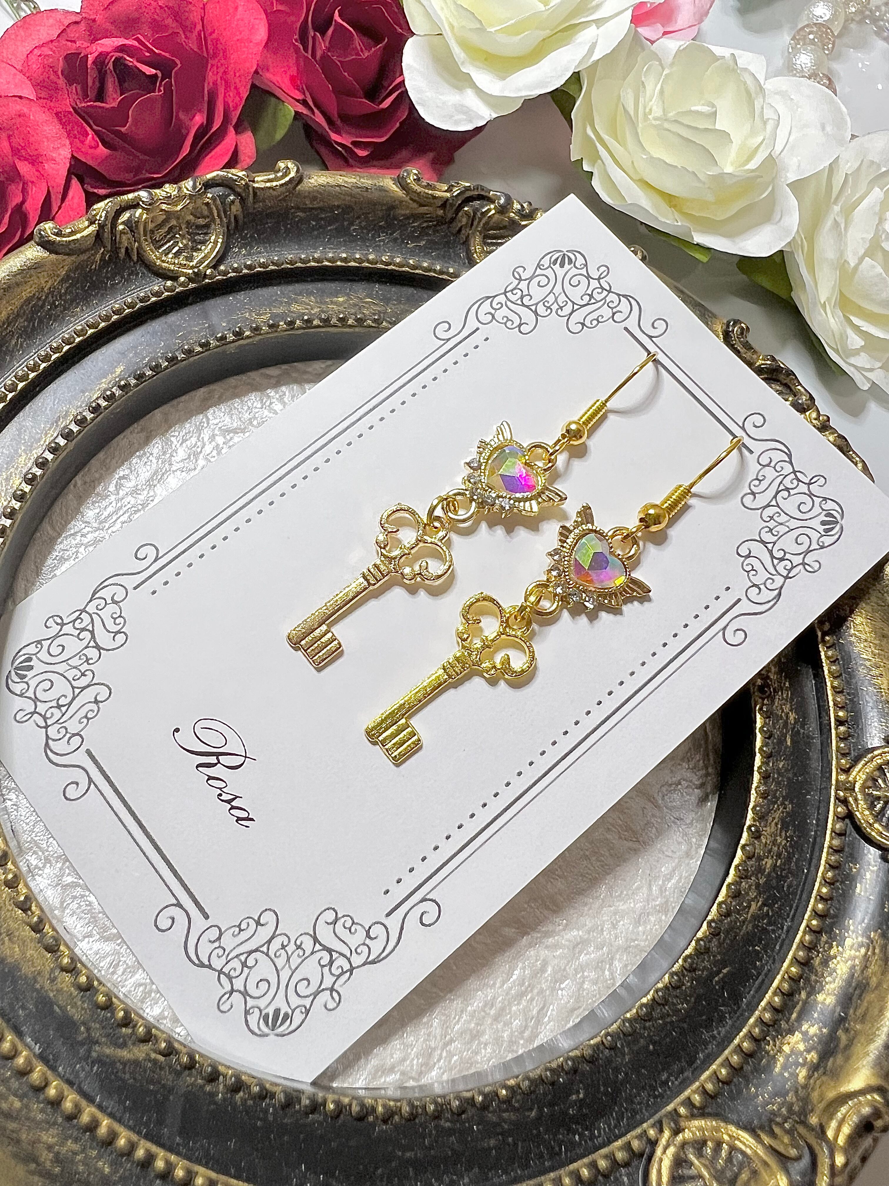 ハートの魔法石×鍵 ピアス イヤリング ゴールド