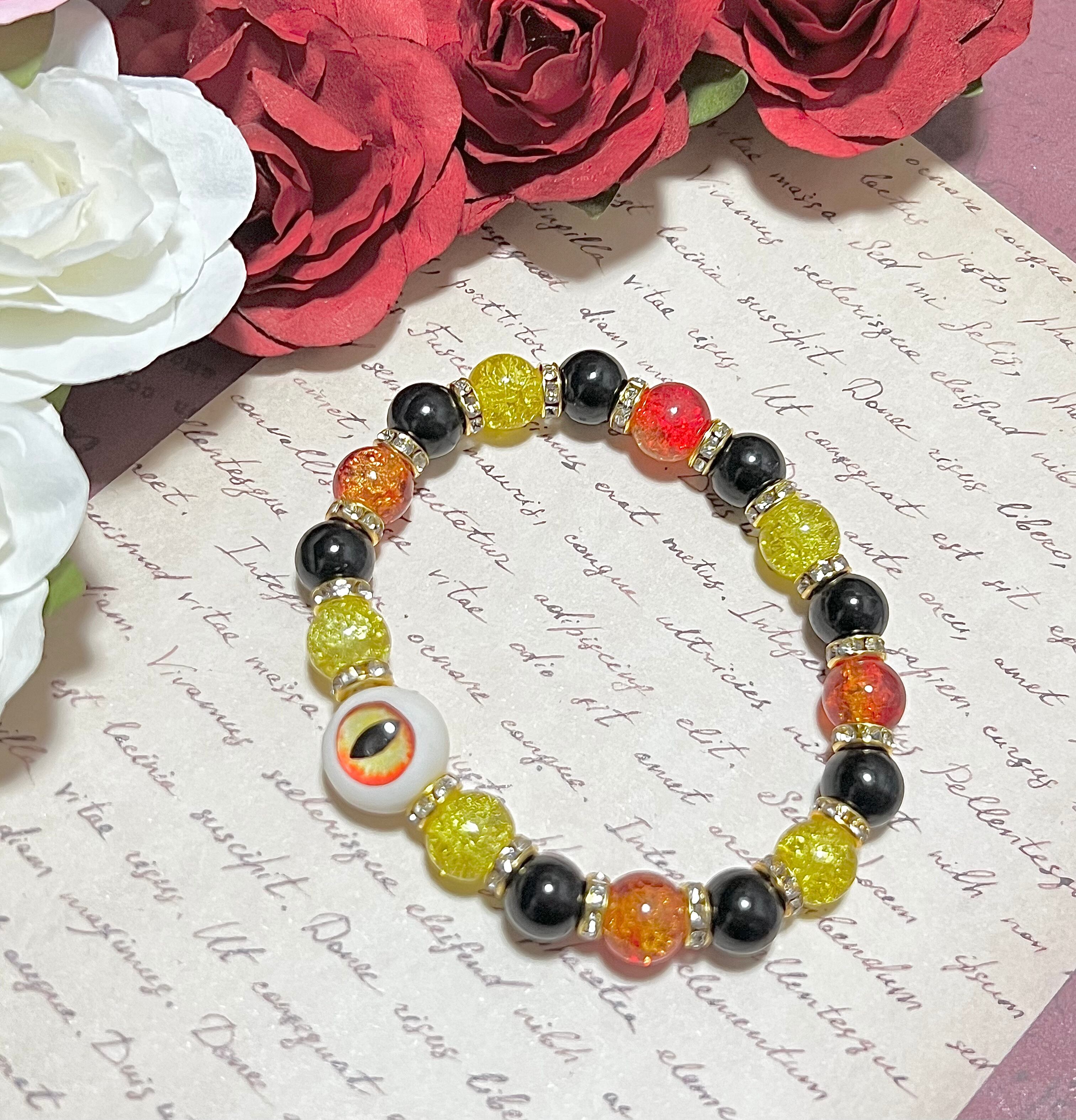 目玉ブレスレット 黒×黄色×赤 ゴールド